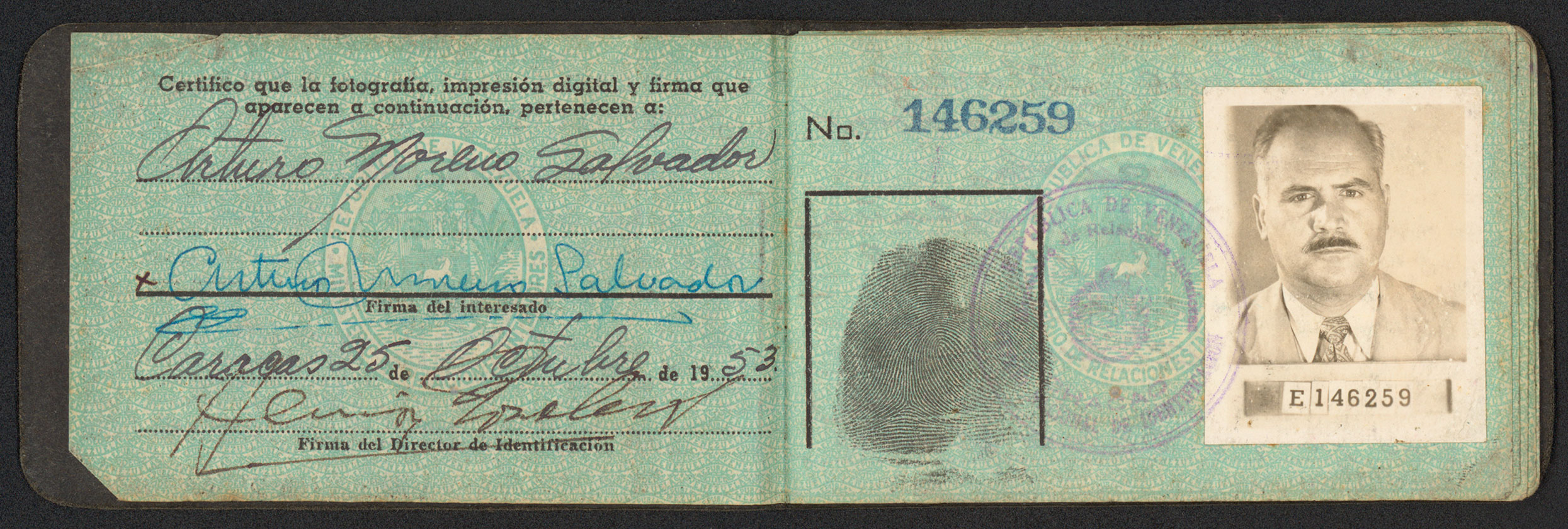 Cèdula d’identitat d’Arturo Moreno durant la seva estada a Venezuela.
